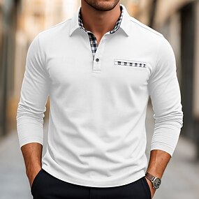 Homme Chemise de golf Polo Piqué Vacances Travail Col Rabattu manche longue Mode Basique Couleur Unie Plaid Carreaux Boutons Été Printemps Automne Coupe régulière Noir Blanche Jaune bleu marine