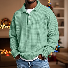 Homme Haut en Tricot Côtelé Texturé Occasionnel Rue Revers manche longue Basique Moderne Uni Boutons Printemps Automne Toutes saisons Coupe régulière Blanche bleu marine Gris Bleu clair Haut en