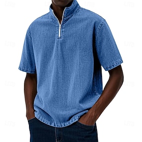 Homme Polo en Coton Chemise de golf Tenue quotidienne Date Zip quart Manche Courte Mode Basique Uni Fermeture éclair Avec Poches Été Printemps Printemps & Été Coupe régulière Vert Armée Noir Rose