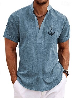 Homme Chemise Chemise en lin Chemise popover Chemise Décontractée Chemise en coton Uni Vacances Rue Blanche Kaki Bleu clair Manche Courte Band Collar Été Vêtement Tenue Boutons