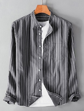 Homme Chemise en lin et coton Chemise à col chinois Chemise à col mao Chemisette Chemise d'été Chemise de plage Chemises à rayures Rayé Vacances Plein Air Noir Blanche Gris manche longue Mao