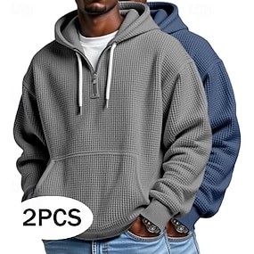 Homme Sweat à capuche Sweat à capuche gaufré Sweat à capuche quart zippé Abricot Noir Blanche bleu marine Violet À capuche Uni Texturé Occasionnel Quotidien Sport & Loisir Polyester Streetwear Frais