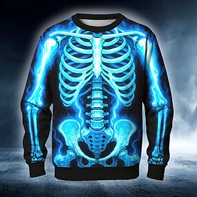 Sweatshirt Costume Squelette Crâne pour hommes Fête punk Manches longues Col rond Vacances Rouge Bleu Col rond 3D Toutes saisons Designer