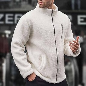 Homme Sweat-shirt Sweat-shirt zippé Sweat-shirt en polaire Sweat-shirt entièrement zippé Abricot Noir Blanche Gris Col montant Uni Zip Up Avec Poches Quotidien Sport & Loisir Fête Polyester