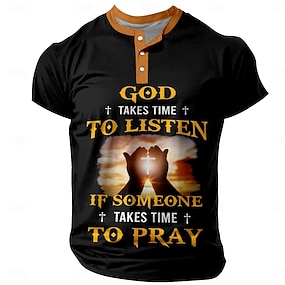 Homme Lettre Geste Être papa n'a pas de prix T-shirt Manche Courte Impression 3D Mode Athleisure Rue Sport en Plein Air Été Printemps Noir Vert Henley T-shirt Henley