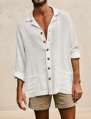Homme Chemise Chemise en lin Chemise d'été Tenue de plage Uni Vacances Occasionnel Noir Blanche Bleu Vert manche longue Revers Printemps & Été Vêtement Tenue