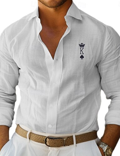 Homme Chemise Chemise Lin Chemise décontractée Chemise boutonnée Chemise en coton Lit 2 Places 'King' Hawaïen Vacances Blanche Rose Claire Bleu clair manche longue Col rabattu Printemps & Automne