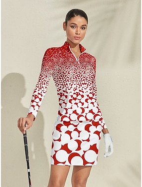 Femmes T-shirt POLO Rouge manche longue Top Vêtements de golf pour femmes, tenues, vêtements