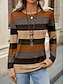 Femmes T-shirt Graphique Géométrique Rayé ancien Mode Élégant manche longue Col ras du cou Col rond Hauts Réguliers Quotidien Week-end Imprimé Marron Été Printemps Automne