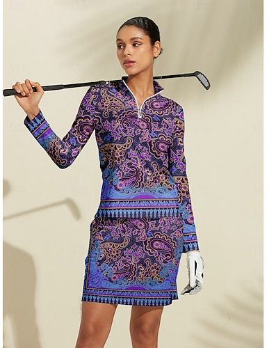 Femme T-shirt POLO Noir Bleu Violet Claire manche longue Protection Solaire Top Léopard Automne Hiver Vêtements de golf pour femmes, tenues, vêtements