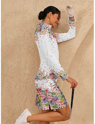 Femme T-shirt POLO Rose manche longue Protection Solaire Top Floral Automne Hiver Vêtements de golf pour femmes, tenues, vêtements