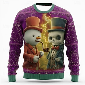 Pull de Noël moche Homme Dessin animé Bonhomme de neige Crânes cool Pull Tricots Col Rond Occasionnel Sombre Vacances Quotidien Festival Impression 3D Garder au chaud manche longue Automne Hiver
