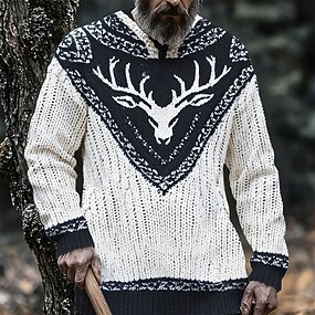 Homme Viking Pull Tricots Col Rond Rétro Vintage Occasionnel Vacances Quotidien Impression 3D Garder au chaud manche longue Printemps Automne Hiver Noir