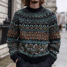 Homme Viking Pull Tricots Col Rond Rétro Vintage Occasionnel Vacances Quotidien Impression 3D Tricot Garder au chaud manche longue Printemps Automne Hiver Bleu Marron Vert