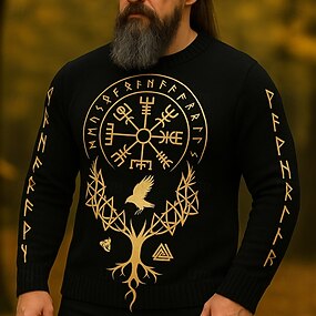 Homme Viking Arbre de la vie Pull Tricots Col Rond Rétro Vintage Occasionnel Vacances Rue Quotidien Impression 3D Tricot Garder au chaud manche longue Automne Hiver Noir Bleu Gris