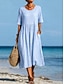 Femmes Robe Midi Robe Décontractée Robe trapèze Élégant Occasionnel Quotidien Vacances Coupe Ample Rayure Manche Courte Col ras du cou Gris Bleu clair Été Printemps