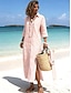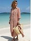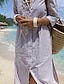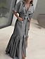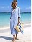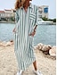 Femmes Robe Midi Robe T-Shirt Vacances Anniversaire Occasionnel Extérieur Plage Sortir Coupe Ample Graphique Rayure manche longue Col Rabattu Kaki Été Printemps