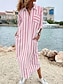 Femmes Robe maxi Robe fourreau Robe d'Été Vacances Occasionnel Extérieur Sortir Coupe régulière Rayure manche longue Col Rabattu Bleu Rose Claire Rouge Café Été Printemps Automne