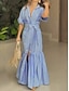 Femme Vêtements de villégiature Robe élégante Robe longue maxi Bleu Manche Courte marinière nouer devant Bandes Imprimé Printemps été Devant Croisé Elégant Vacances robe de vacances S M L