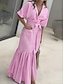 Femmes Robe maxi Robe Décontractée Robe trapèze Élégant Plage Coupe régulière Graphique Rayure Manche Courte Col de chemise Bleu Noir Rose Claire Rouge Été Printemps