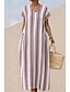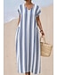 Femmes Robe Midi Robe d'Été Vacances Occasionnel Chaussures de plage Quotidien Sortir Coupe Ample Graphique Rayure Manche Courte Col en V Frêne Été