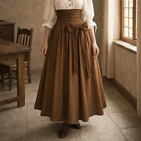 Rétro Vintage Médiéval Renaissance Maxi Jupe Pirate Viking Couleur Unie Déguisement Femmes Celtique Halloween Carnaval Vacances Décontracté Quotidien LARP Adulte Jupe