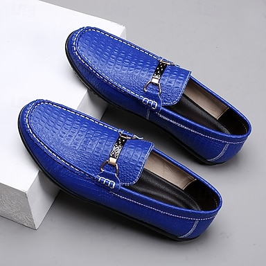 Mocassins bleus pour homme en similicuir – chaussures habillées classiques à enfiler, style décontracté chic, pour le bureau, la conduite et le quotidien