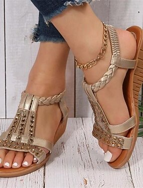 sandales à lanières ornées de strass pour femmes avec semelle confortable - idéales pour les fêtes et les occasions spéciales