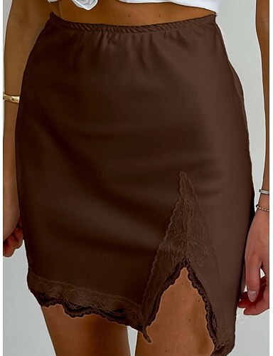 Femmes Mode Occasionnel Au-dessus du genou Taille haute Jupes Dentelle Patchwork Élastique Quotidien Rue Vin Blanche Marron Été Polyester
