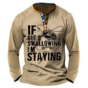 Chemise Henley à manches longues pour hommes graphique de pêche amusant avec le jeu de mots 'Si elle l'avale je reste' Tee d'humour pour adultes