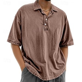Homme Polo Chemise 100% coton délavée à l'acide Occasionnel Fête Revers Manche Courte Mode Basique Uni Vintage Affligé Été Printemps Bleu Noir bleu marine Marron Vert Vert Véronèse Polo