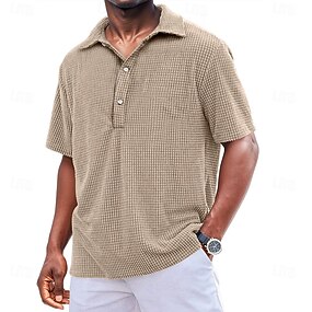 Homme Chemises Polo Gaufre Texturé Occasionnel Affaires Col Rabattu Manche Courte Mode Basique Couleur Unie Texturé Boutons Pur Printemps & Été Bleu Café Marron Noir Rouge bleu marine Violet Chemises