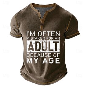 Homme Texte Marrant OLD PEOPLE T shirt Chemise Henley Shirt Manche Courte Design Rétro Vintage Plein Air Casual du quotidien Eté Printemps Marron Sapin Noir Bleu Kaki Henley T-shirt Henley