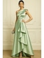 Ligne A Longueur au sol Robe de Soirée Tenue de soirée Élégant Sans manches Une Épaule Formel Mariage Poche Satin avec Froncé Volants