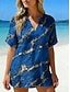 Femmes Chemise Chemise Décontractée Chemise de Plage Chemisier Imprimé Marbre Élégant Classique Moderne Manche Courte Col en V Hauts Réguliers Quotidien Fête Sortir Bleu Jaune Vert Été Printemps