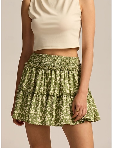Femmes Jupe de vacances Mode Occasionnel Mini Taille haute Jupes Floral Imprimé Ébouriffé Élastique Quotidien Rue Marron Vert Été Polyester