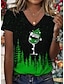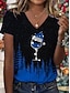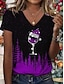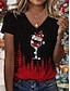 Noël Femmes T-shirt Graphique Arbre de Noël ancien Élégant Classique Manche Courte Col en V Hauts Réguliers Quotidien Imprimé Noir + blanc + rouge Noir et gris Noir Rose Claire Kaki Été Printemps