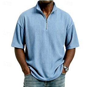 Homme Polo Chemise en velours côtelé Quotidien Extérieur Zip quart Manche Courte Mode Basique Uni Fermeture éclair Été Coupe sur mesure Bleu Noir Blanche Rouge bleu marine Violet Polo