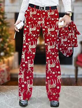 Homme Pantalon de Noël pantalon de costume Pantalon Boutons Poche Jambe droite Cerf Confort Formel Noël Entreprise Mode Style classique Rouge Micro-élastique