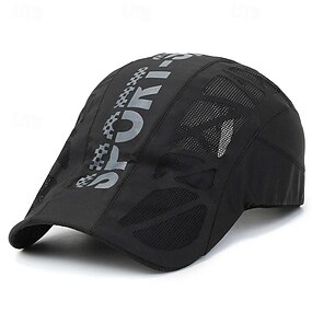 Homme Béret Chapeau Chapeau de soleil Casquette Noir bleu marine 100% Coton Maille Mode Décontractées Plein Air du quotidien Lettre Ajustable Ecran Solaire Respirable