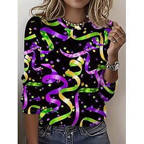 Mardi Gras Femmes T-shirt Imprimé Graphique Lettre Vintage Bohème ancien Mode Manche Courte manche longue Col ras du cou Hauts Réguliers Quotidien Week-end Noir Vert foncé Violet Vert Beige Ét