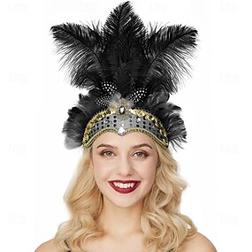 Carnaval 2026 Coiffe en Plume Rouge et Noire pour Femmes Accessoire de Danse pour le Festival de Mardi Gras au Brésil