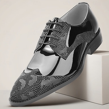 Chaussures Oxford pour homme en cuir véritable noir de qualité supérieure, à lacets, en cuir verni, avec motif peau de serpent. Idéales pour les hommes d'affaires, les mariages, les fêtes, les banquets et pour un style raffiné.