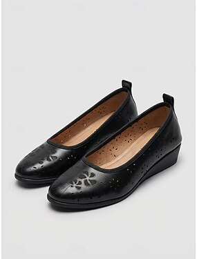 Ballerines compensées rouges respirantes pour femmes, en similicuir à imprimé floral, confortables et décontractées à enfiler au quotidien &sorties estivales