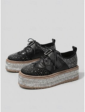 Baskets à plateforme strass pour femmes, chaussures décontractées à lacets et semelle épaisse espadrille, parfaites pour une soirée ou un look streetwear. &événements