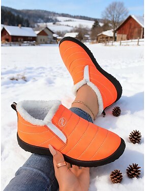 Bottes de neige imperméables orange pour femmes avec doublure en peluche chaude, chaussures d'hiver légères à enfiler pour le temps froid en extérieur et le style Halloween