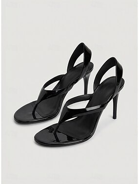 Sandales à talons hauts compensées en cuir verni noir pour femme, chaussures de soirée à bride cheville et stilettos pour les sorties nocturnes et les boîtes de nuit. &looks audacieux du soir