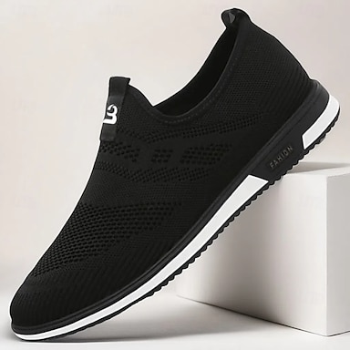 Chaussures décontractées à enfiler en maille noire pour homme avec motif étoile – Chaussures streetwear légères pour les voyages, les promenades urbaines et les sorties du week-end