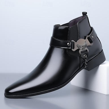 Bottines pour homme en similicuir beige avec boucle décorative – chaussures élégantes et résistantes pour les événements décontractés et semi-formels