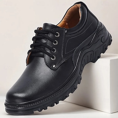 Chaussures Oxford classiques pour hommes en similicuir - noires, aspect poli, élégantes et confortables pour le bureau, les événements formels et les mariages.